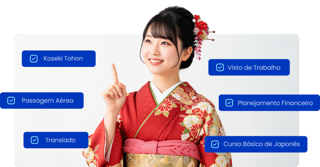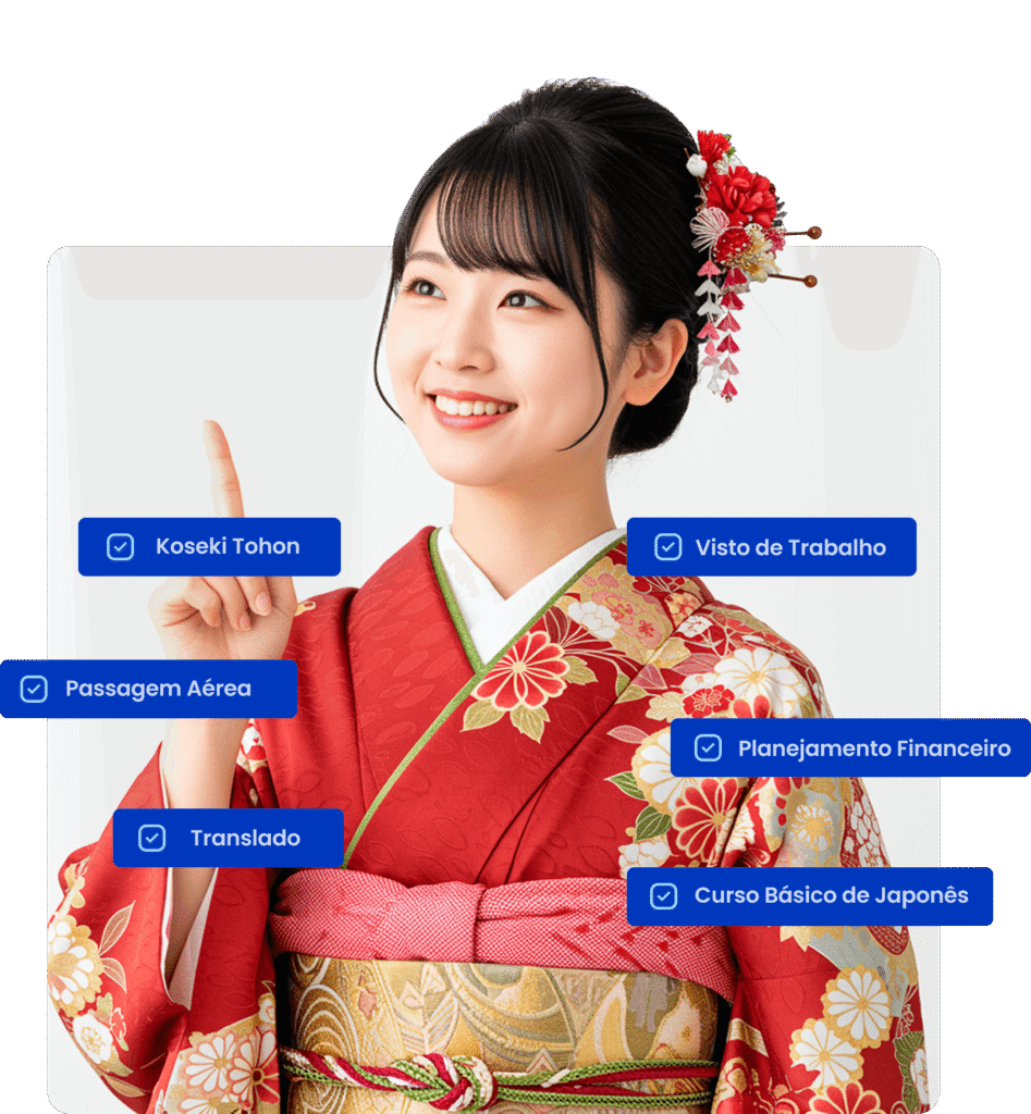 Viajar para o Japão nunca foi tão acessível. Com o Financiamento Zero Daikoku RH, você não paga nada antes do embarque, nada ao chegar e nada depois. A empresa contratante cobre todos os custos: passagem aérea, visto de trabalho com traduções, koseki tohon, translado do aeroporto ao apartamento, curso básico de japonês e suporte vitalício.